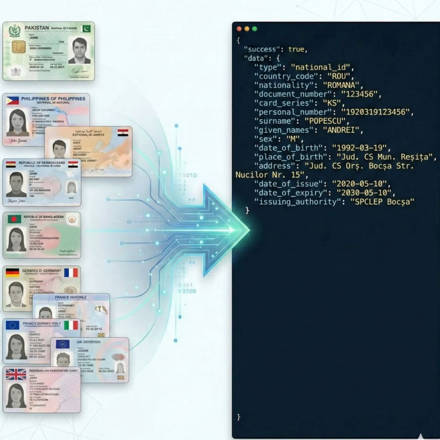 High-accuracy National ID OCR for Python. Get structured JSON output via our dedicated Python SDK. Automate KYC and data entry with 99%+ accuracy.